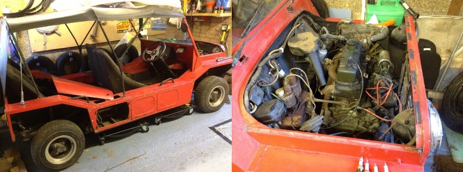 The previous owner of my car, who I had known for ages asked me one day if I could help him move his Mini Moke from a lockup garage that he had just sold and that was collapsing around the car!! I got a friend to help and we went down one evening and pulled the car out onto the trailer. As soon as I saw it I knew I just had to own the car.! By the time we got back it was too dark to really view so I arranged to go back next morning. A deal was struck and woohoo I owned the car!!