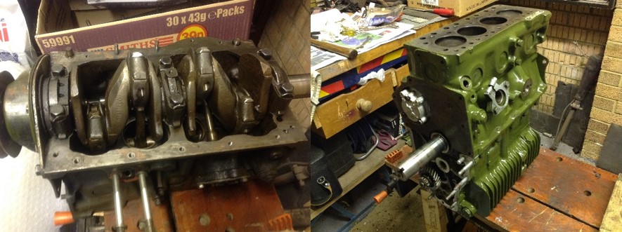 As this was going on I also stripped the engine down to check it over, and all was good inside, the crank and shells were near perfect and the cylinders fine. The gearbox needed some work as there was some wear, so this was done, new oils seals etc fitted where needed, and a new clutch plate for good measure. The head was cleaned and the valves cleaned /reseated. The engine was reassembled and painted, with all ancillaries refitted and timing set up statically ready for the great fire up moment!
