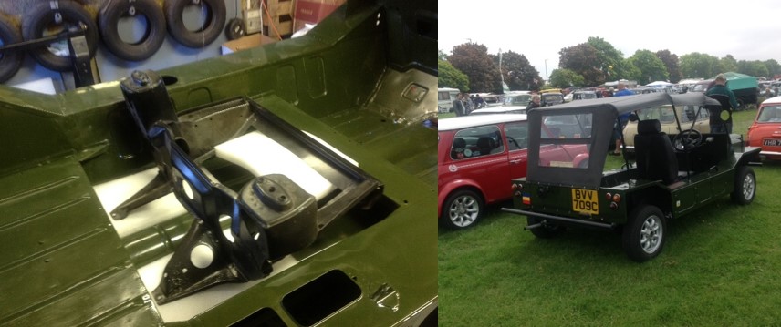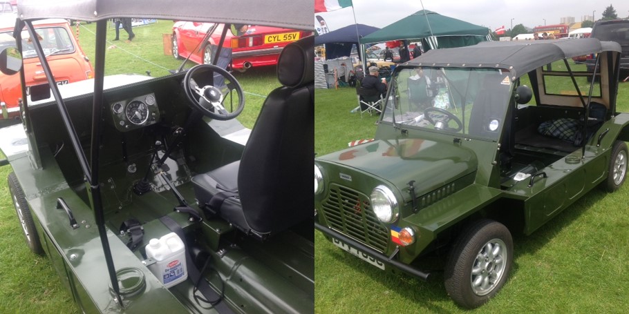 James Beeton recounts how his Mini Moke rose from a less than pristine state to its current excellent condition. The picture shows his Moke at the 2018 Barnet Classic Car Show with some large distant relatives just behind.