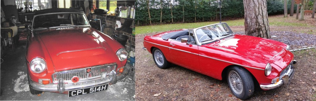 The car has been fully serviced and new rear shock absorbers fitted, new fuel lines, new Servo, electronic ignition and converted to 12V battery. The car now drives well and is very torquey. The photos below show the car pre rebuild in 1969 and a latest photo.