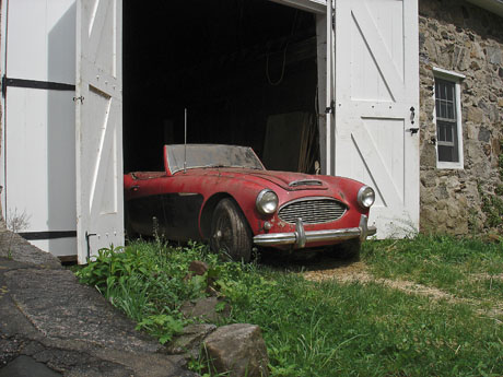 The car was then trailered back down to my house, and with the help of a few locals from the pub we pushed it up the steep ramp into my garage, the brakes were seized on the rear so this was no mean task….